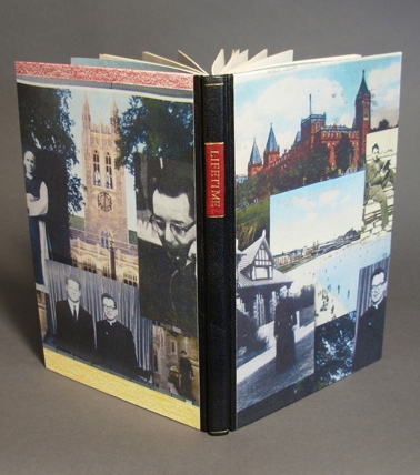 John J. Burns Library Conservator Barbara Adams Hebard has created a new cover for It Will Take a Lifetime by Francis W. Sweeney, S.J., a Boston College alumnus, professor, poet and founder of the Humanities Series (now Lowell Humanities Series) who passed away in 2002. It Will Take a Lifetime is a book of essays by Fr. Sweeney, detailing growing up in Massachusetts, his education at The College of the Holy Cross and at Boston College, and his life as a Jesuit, beginning at Shadowbrook Jesuit Seminary in Stockbridge, Mass., and continuing with his teaching career at Boston College. Fr. Sweeney’s essays also cover summer outings at Nantasket beach and Cape Cod. Hebard designed a new cover to appear as scrapbook pages, reflecting Fr. Sweeney’s early years on the front and his Boston College career on the back. “I hoped that the images on the cover would invite others to learn more about Father Sweeney and his work at Boston College.” It Will Take a Lifetime, with its newly created cover, is part of the New England Chapter of the Guild of Book Workers’ “Geographies: New England Book Works” exhibition traveling now through October 2015. Read more in the Boston College Libraries Newsletter.